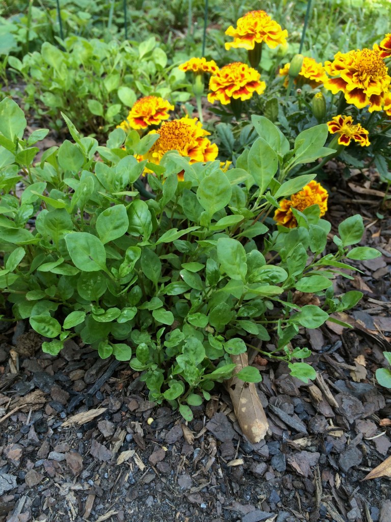 indigo seedlings and marigolds