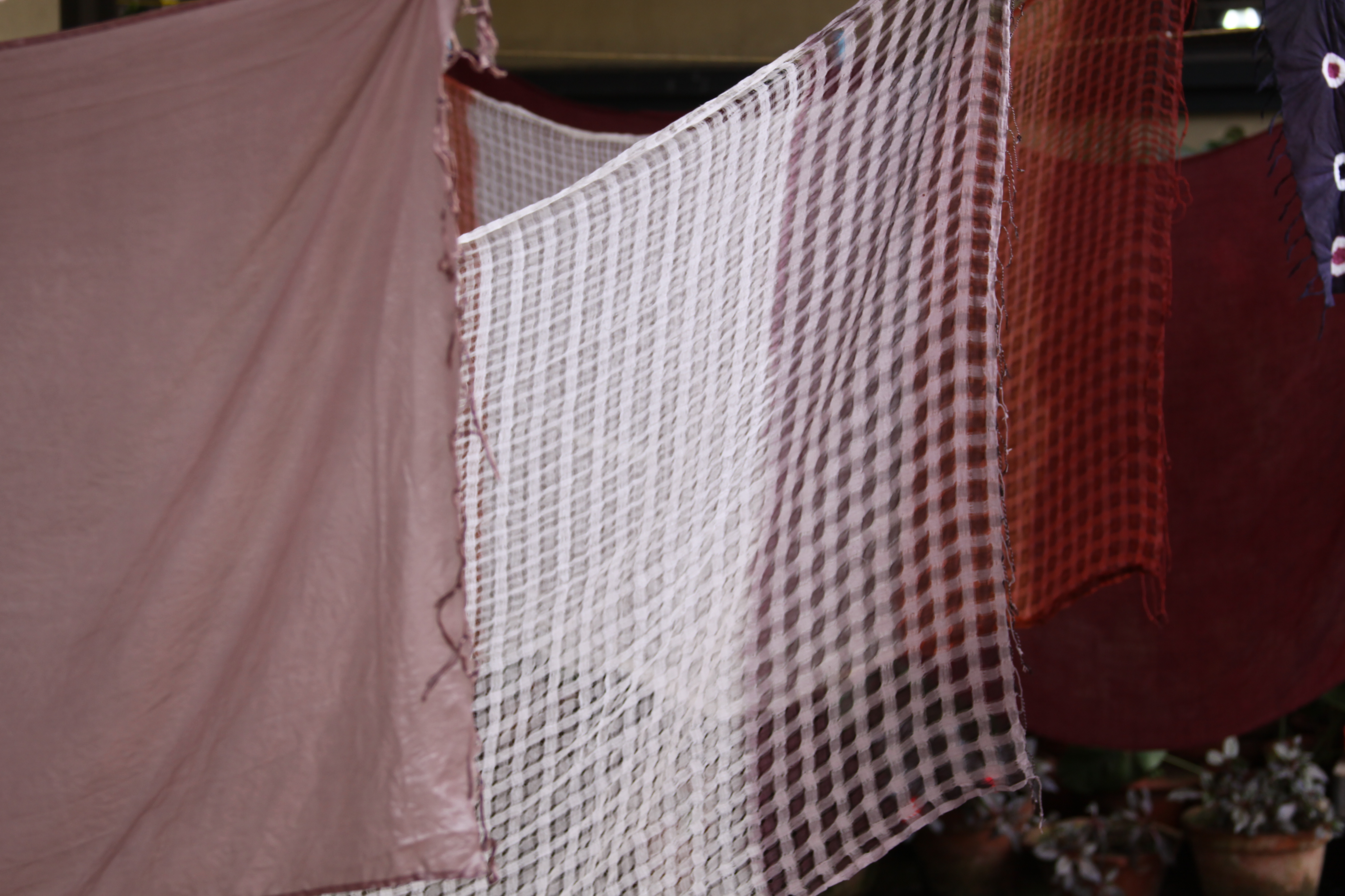 Next – the natural binder of High Fat Milk and Myrobalan used by the Kalamkari artists of India allows me to paint on the muslin (cotton cloth) woven in India.